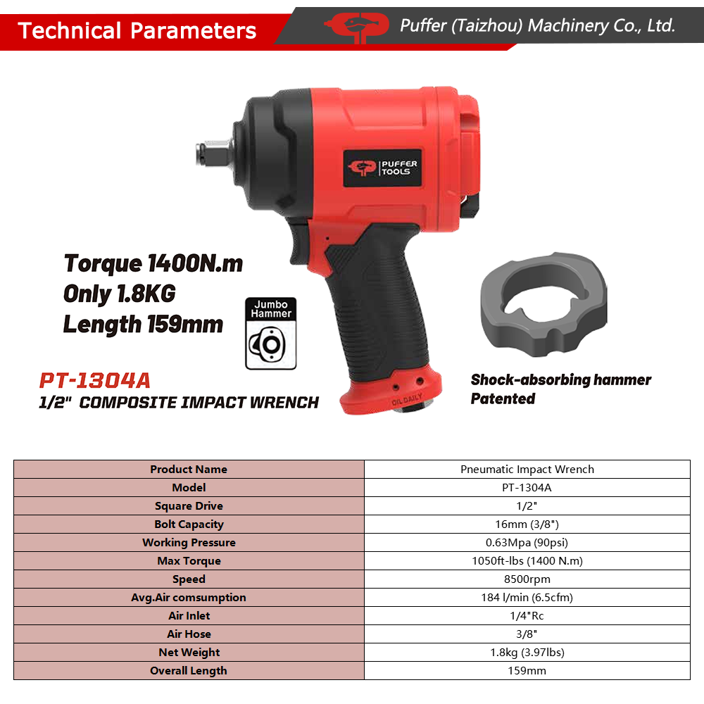 PT-1304 1/2 inch 1400N.m Pneumatic Air Impact Wrench Gun
